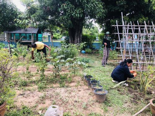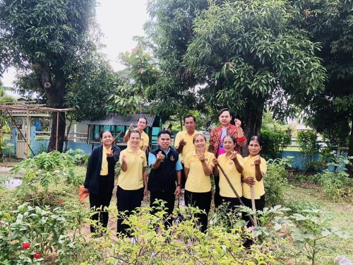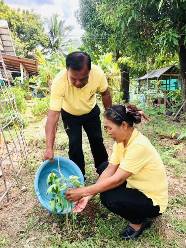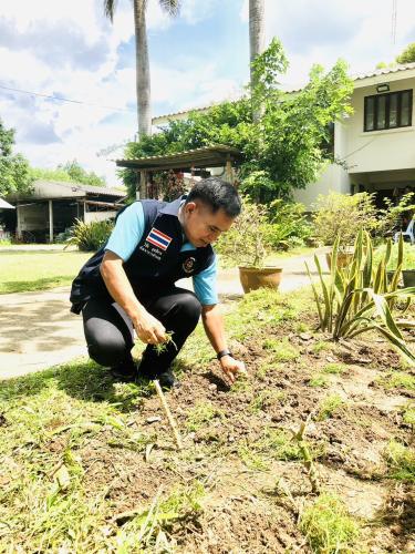 พร้อมทำกิจกรรมปลูกผักสวนครัว การน้อมนำแนวพระราชดำริของ สมเด็จพระกนิษฐาธิราชเจ้า กรมสมเด็จพระเทพรัตนราชสุดาฯ สยามบรมราชกุมารี สู่ปฏิบัติการปลูกผักสวนครัว เพื่อสร้างความมั่นคงทางอาหาร ณ บริเวณบ้านพักนายอำเภอหนองพอก หมู่ที่ ๑ ตำบลหนองพอก จังหวัดร้อยเอ็ด