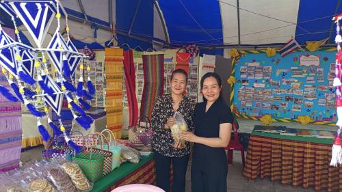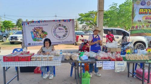 -สำนักงานพัฒนาชุมชนอำเภอหนองพอก จังหวัดร้อยเอ็ด: การจำหน่ายสินค้าตลาดประชารัฐคนไทยยิ้มได้